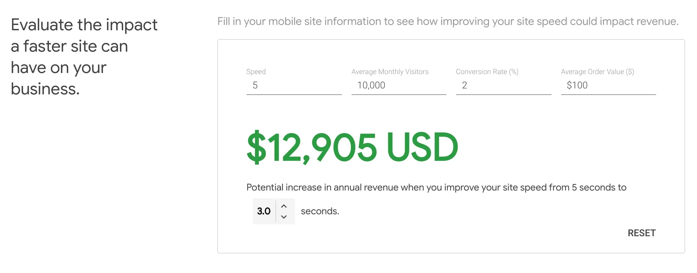 Google even provides a calculator that measures how much more money you would be making if you speed up your site by just a couple seconds.